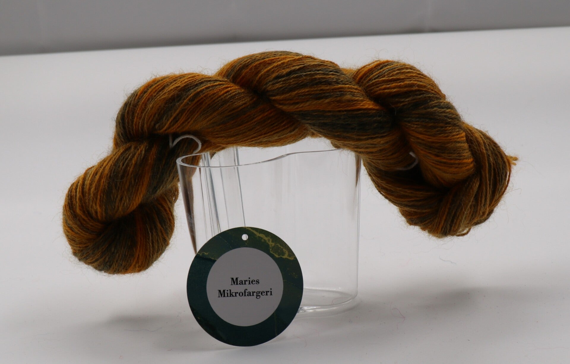 Sitig tretrådsgarn av teeswater ull. Teeswater er en langullrase fra England. Den har medium myk ull, tover middels lett og egner seg til plagg som trenger slitestyrke. Jeg har brukt den til tøler som tovet seg litt etter lengre bruk og maskinvask. Etter ett års bruk er det ikke hull i dem enda.