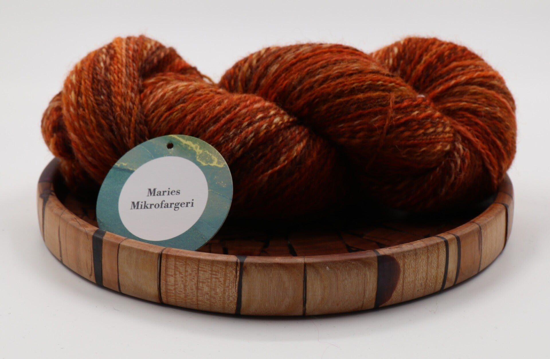Nydelig totrådsgarn med mange sjatteringer i brunt, orange og offwhite.