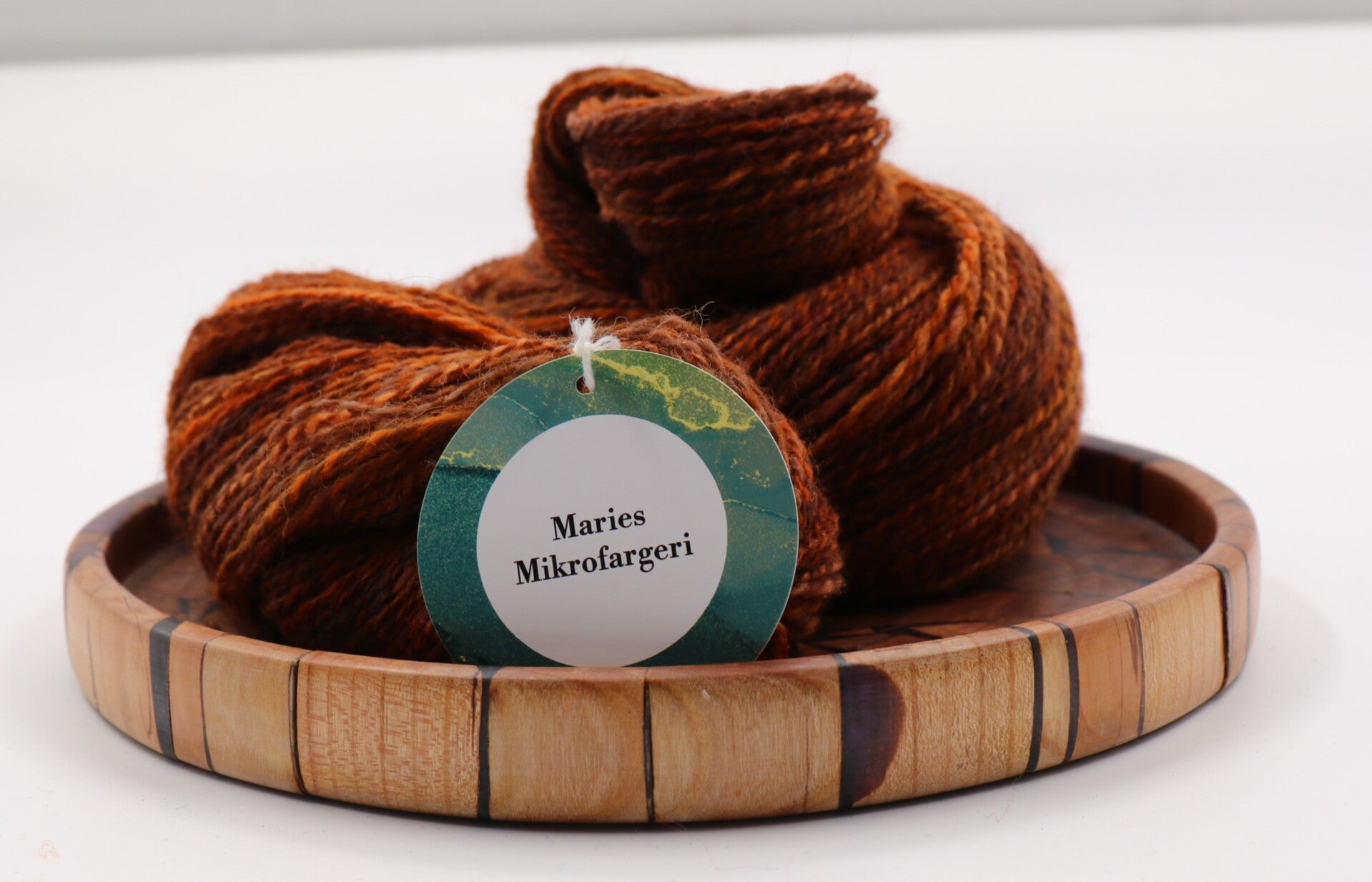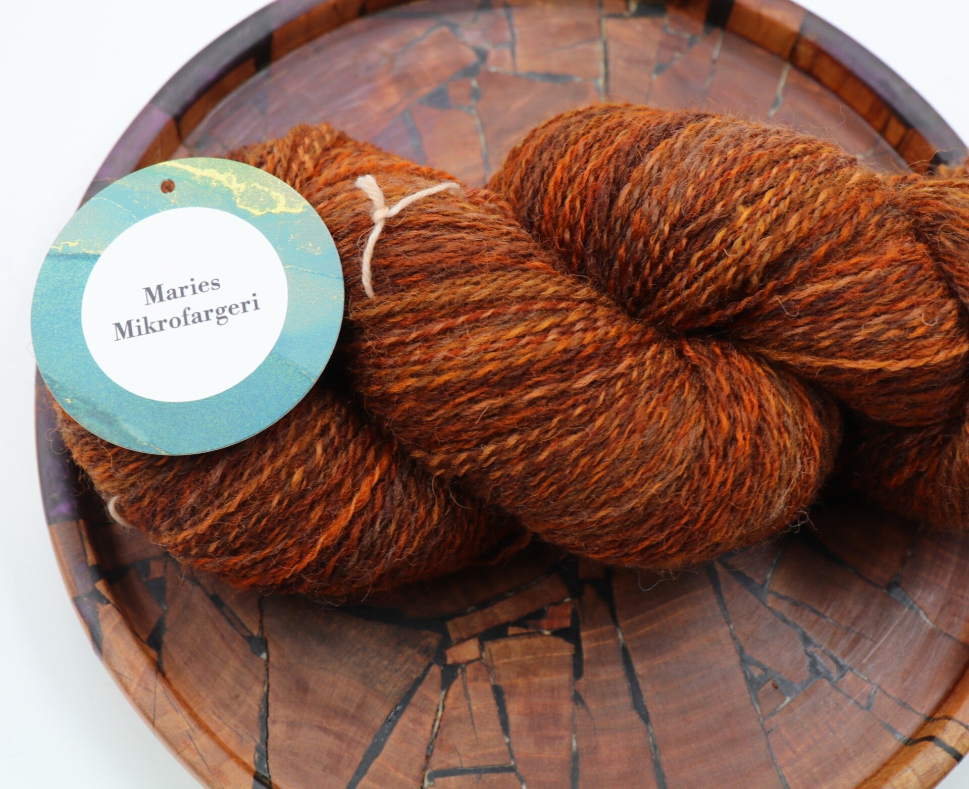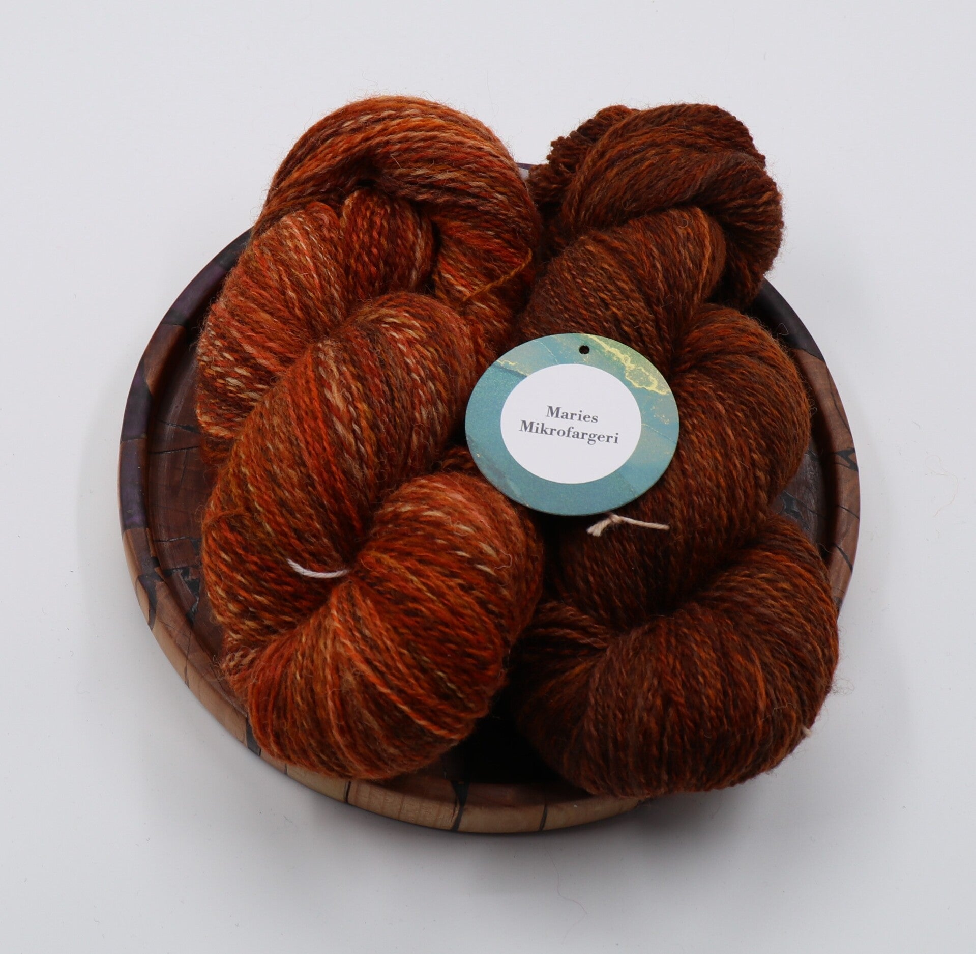 Herlig rikt brun totråds hespe med sjatteringer hovedsaklig i brun, men med noe orange.
