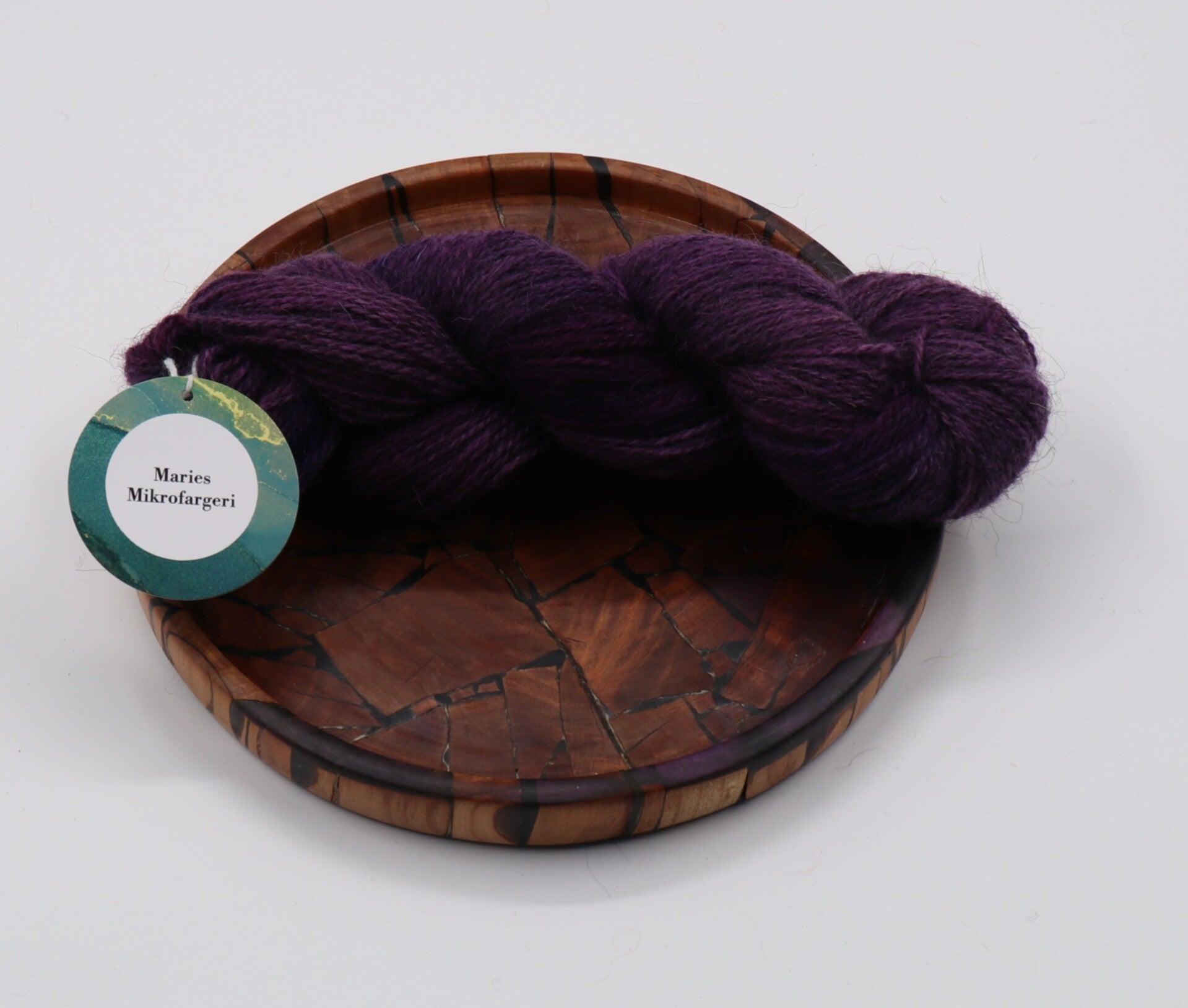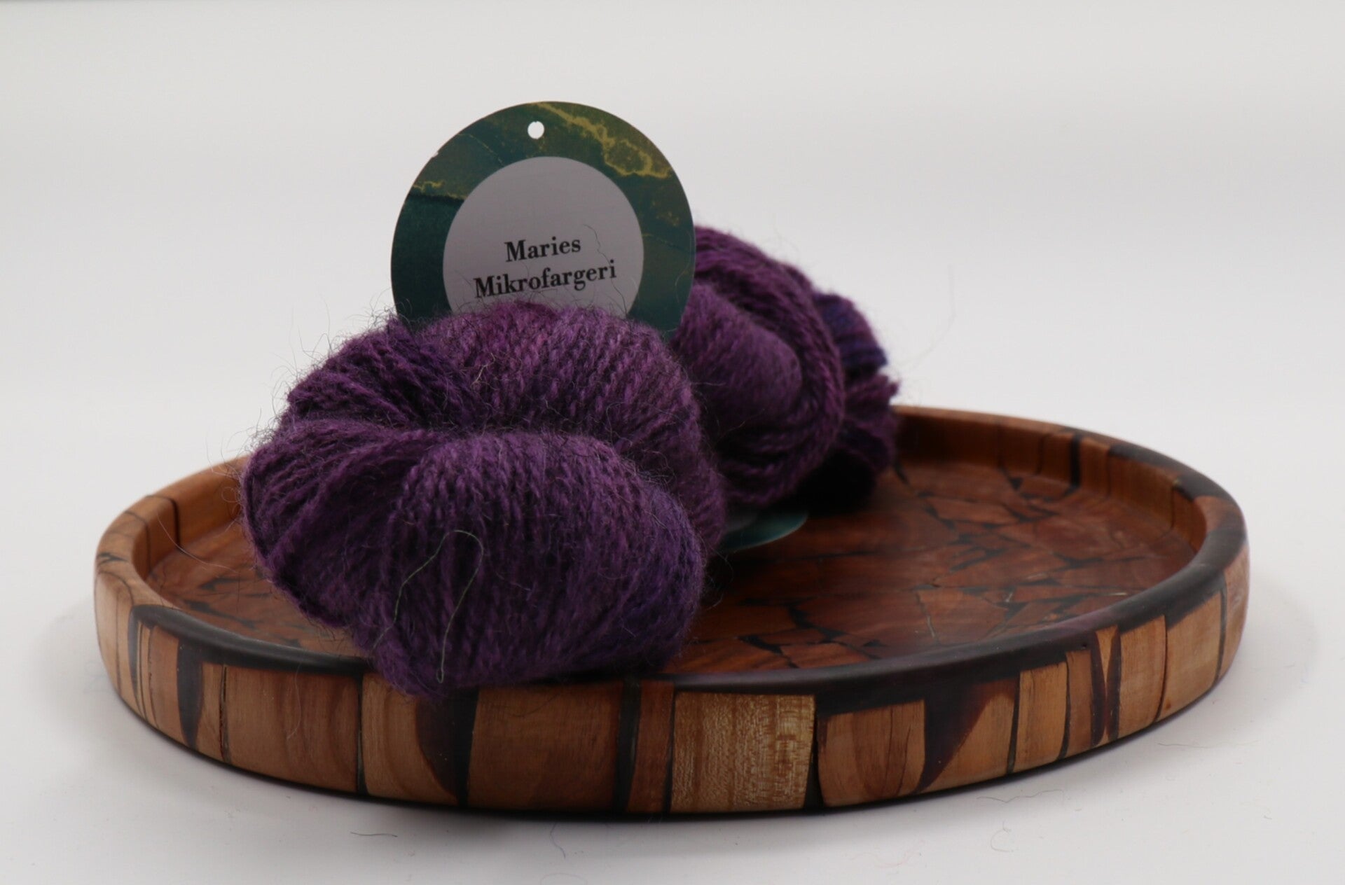 På dette herlige norsk villsaugarnet fikk lilla bre seg ut i mange flotte sjatteringer. Dette vil gi liv og dybde i det ferdige trikkeplagget.
