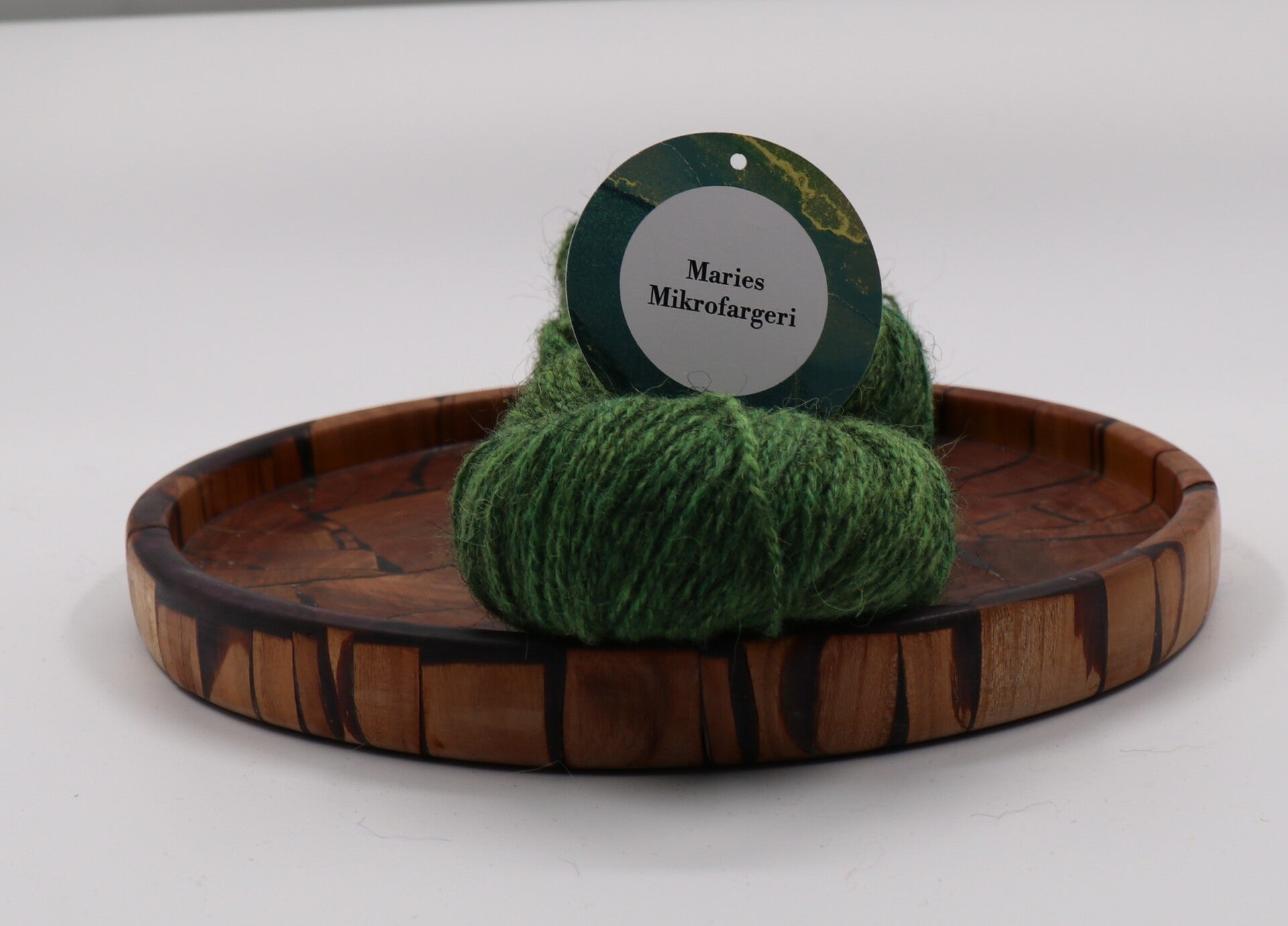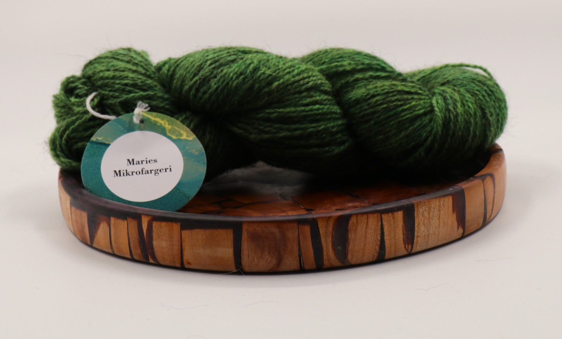 Herlig grønnfarget villsaugarn inspirert av Prøysens vise "En vott er grønn og en vott er grønn. Og begge votter er grønne" I fortelligen om den grønne votten er det brodert fine hvite hjerter på vottene.